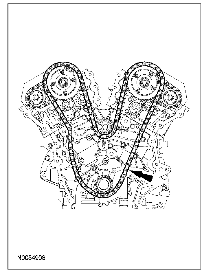 ^ Remove the RH VCT assembly, secondary timing chain and the RH exhaust camshaft sprocket as an assembly.