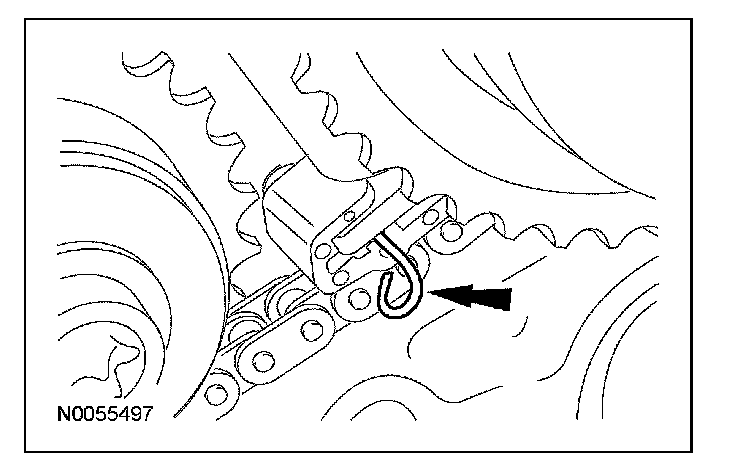 14. Compress the LH secondary timing chain tensioner and install a suitable lockpin to retain the tensioner in the collapsed position.