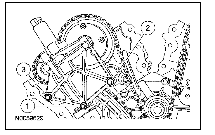 18. NOTE: It may be necessary to rotate the crankshaft slightly to remove slack from the timing chain and install the tensioner.