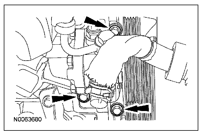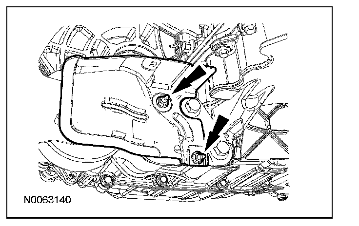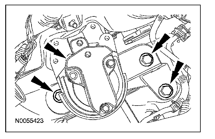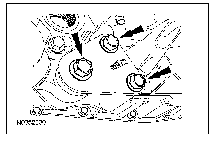 Apply a 3.0 mm (0.11 in) bead of Motorcraft High Performance Engine RTV Silicone to the engine front cover sealing surfaces including the 3 engine mount bracket bosses.