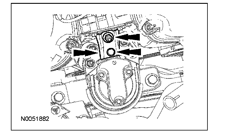12. Install the engine mount bracket and the 2 bolts.