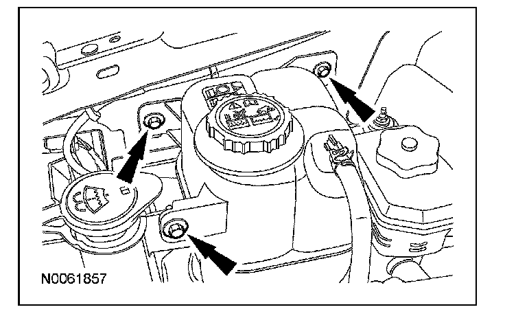 19. Install the power steering reservoir and the 2 nuts.
