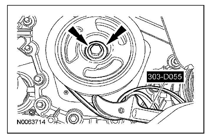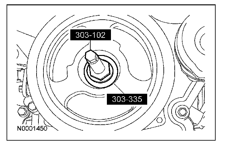 46. Using the special tool, install the crankshaft pulley washer and new bolt and tighten in 4 stages.
