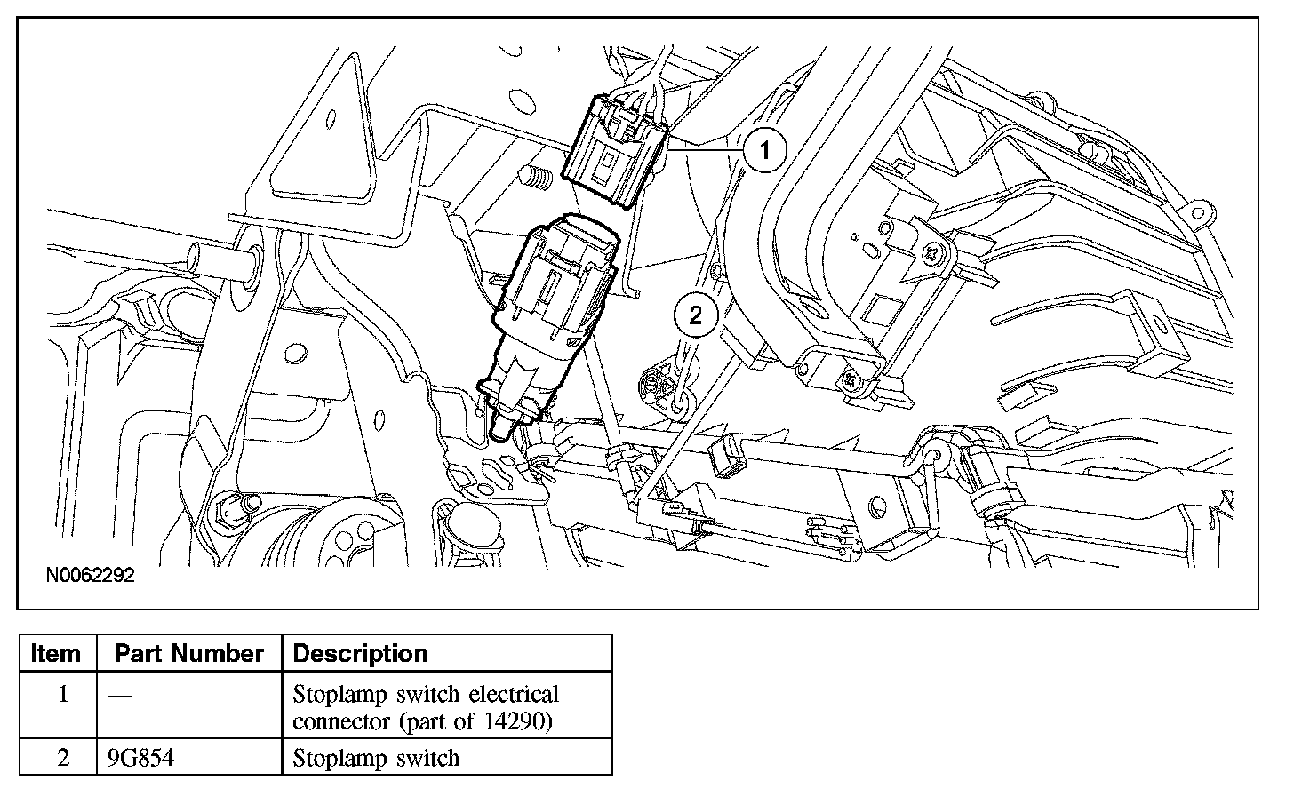 CAUTION: It is very important to not press, pull or touch the brake pedal assembly during the installation of the stoplamp switch. Failure to follow these instructions may damage the stoplamp switch.