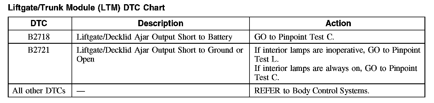 Liftgate/Trunk Module (LTM) DTC Chart