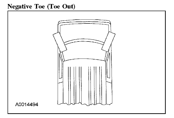 Wheel Alignment AnglesNOTE: When making rear alignment adjustments, it is important to know that when adjustments are made to the rear toe, the rear camber will also be adjusted (in the same direction as the toe adjustment). When making adjustments to the rear camber, the rear toe will also be adjusted (in the opposite direction of the camber adjustment). It will be necessary to check the rear camber whenever rear toe adjustments are made and to check the rear toe whenever rear camber adjustments are made.