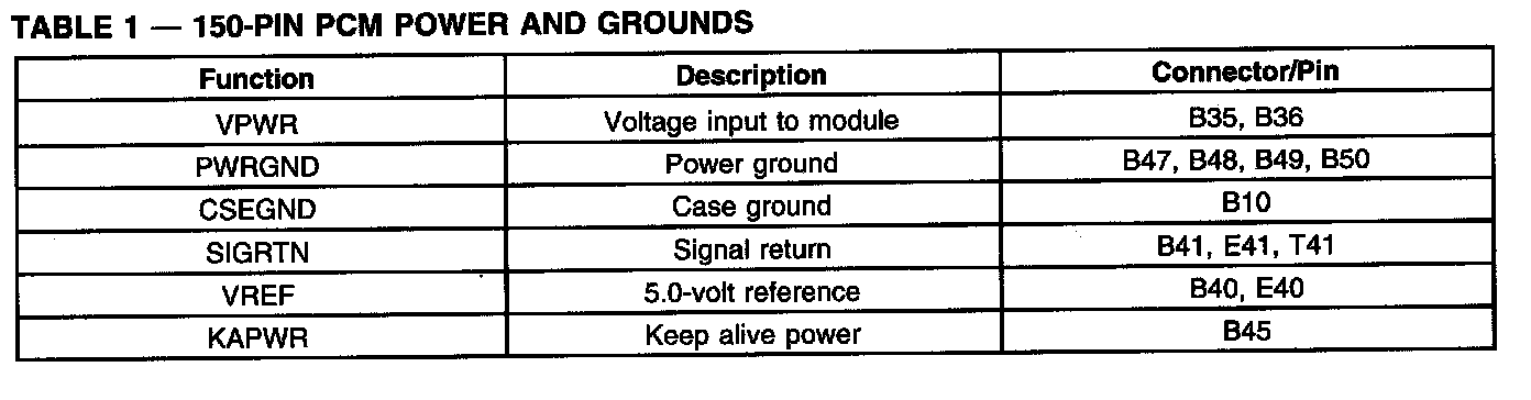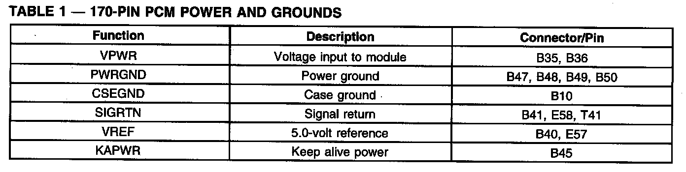 The PWR GND circuit(s) is directly connected to the battery negative terminal. PWR GND provides a return path for the PCM vehicle power (VPWR) circuits.