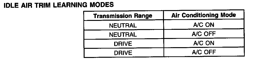Idle Air Trim Learning Modes: