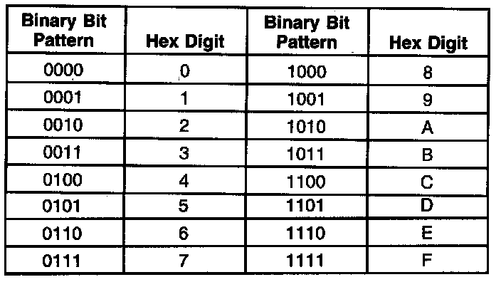 The table shows how to decode the bits into hex digits.