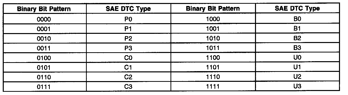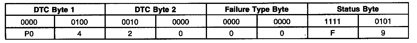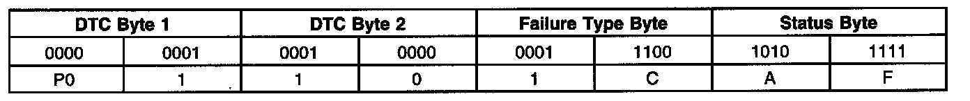 A list of failure type bytes is defined by SAE J2012 but is not described here because the PCM does not use the failure type byte.