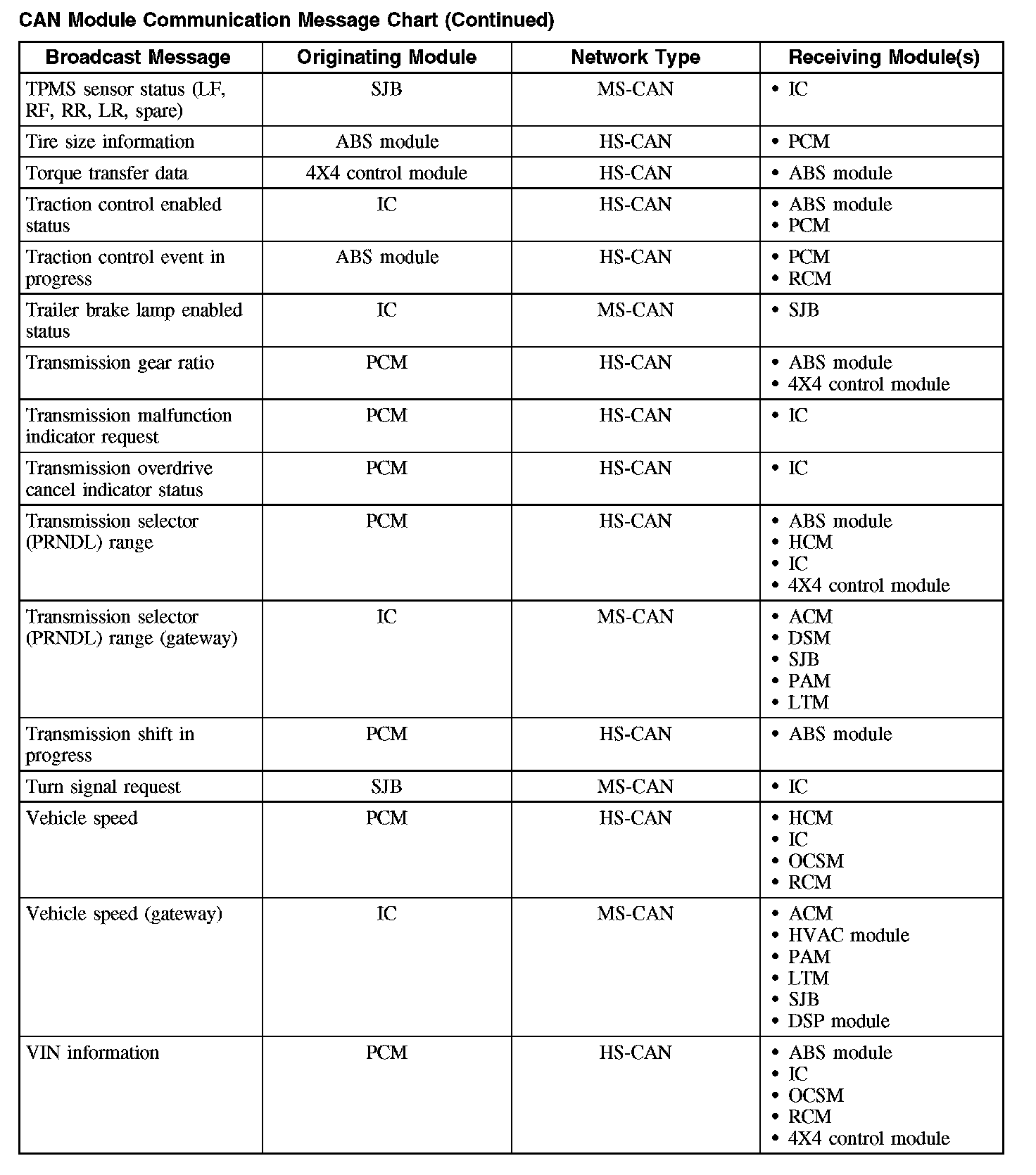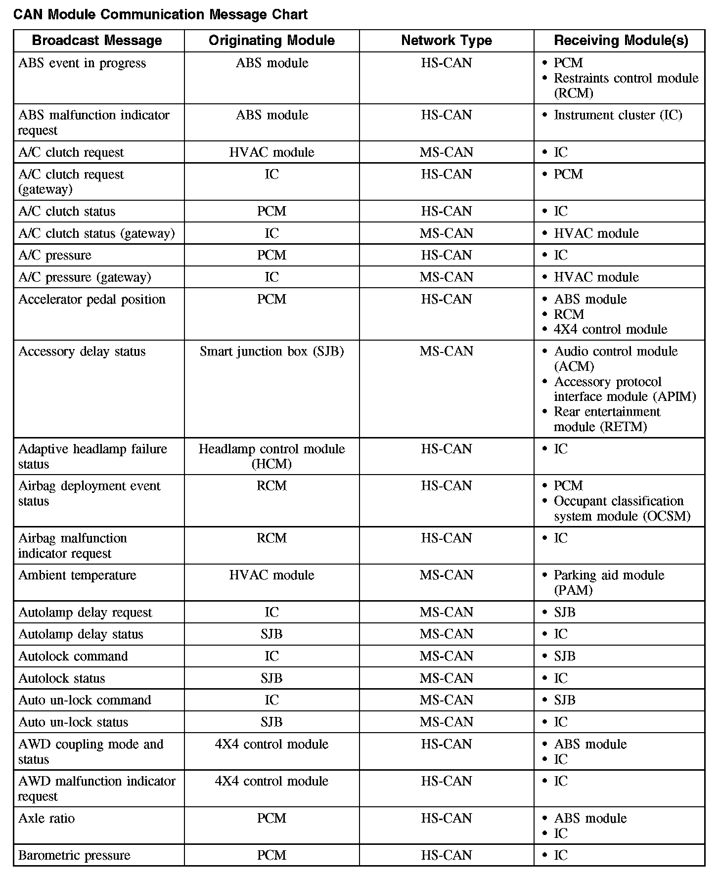 Vehicle communication utilizes both the medium and high speed controller area network (CAN) communications. CAN is a method for transferring data among distributed electronic modules via a serial data bus.