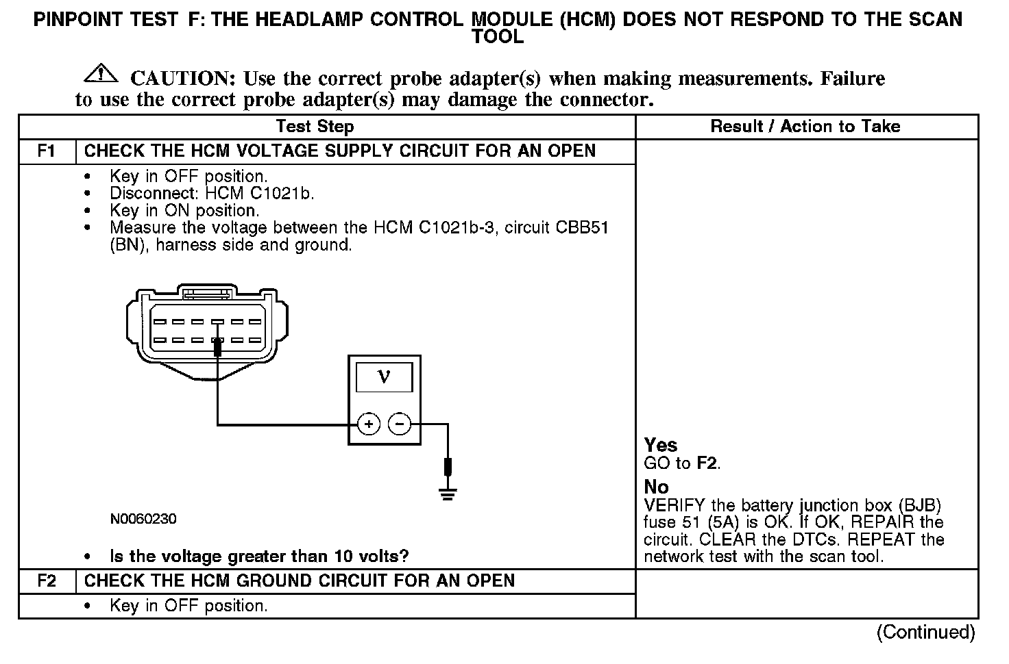PINPOINT TEST F: THE HEADLAMP CONTROL MODULE (HCM) DOES NOT RESPOND TO THE SCAN TOOLNormal Operation