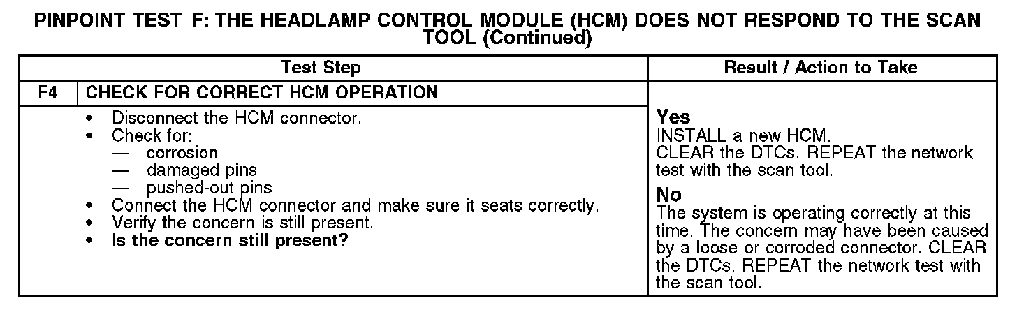 Test F: The Headlamp Control Module (HCM) Does Not Respond To The Scan Tool