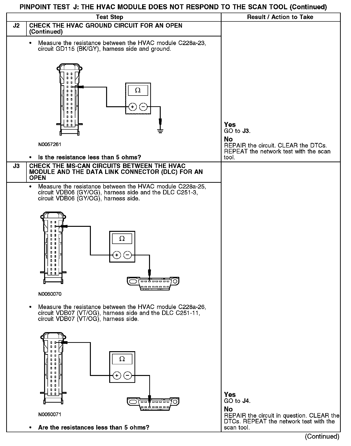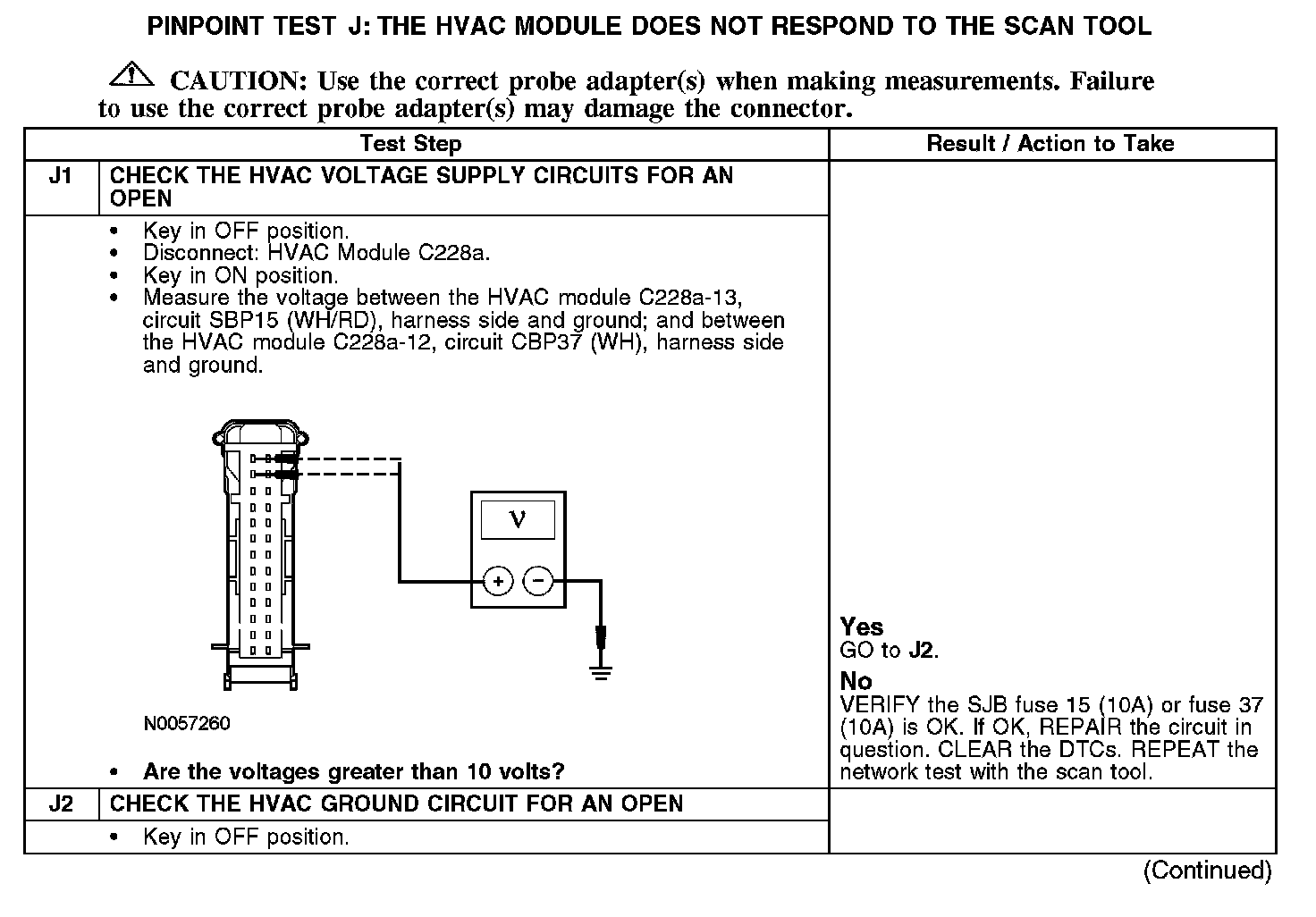 PINPOINT TEST J: THE HVAC MODULE DOES NOT RESPOND TO THE SCAN TOOLNormal Operation