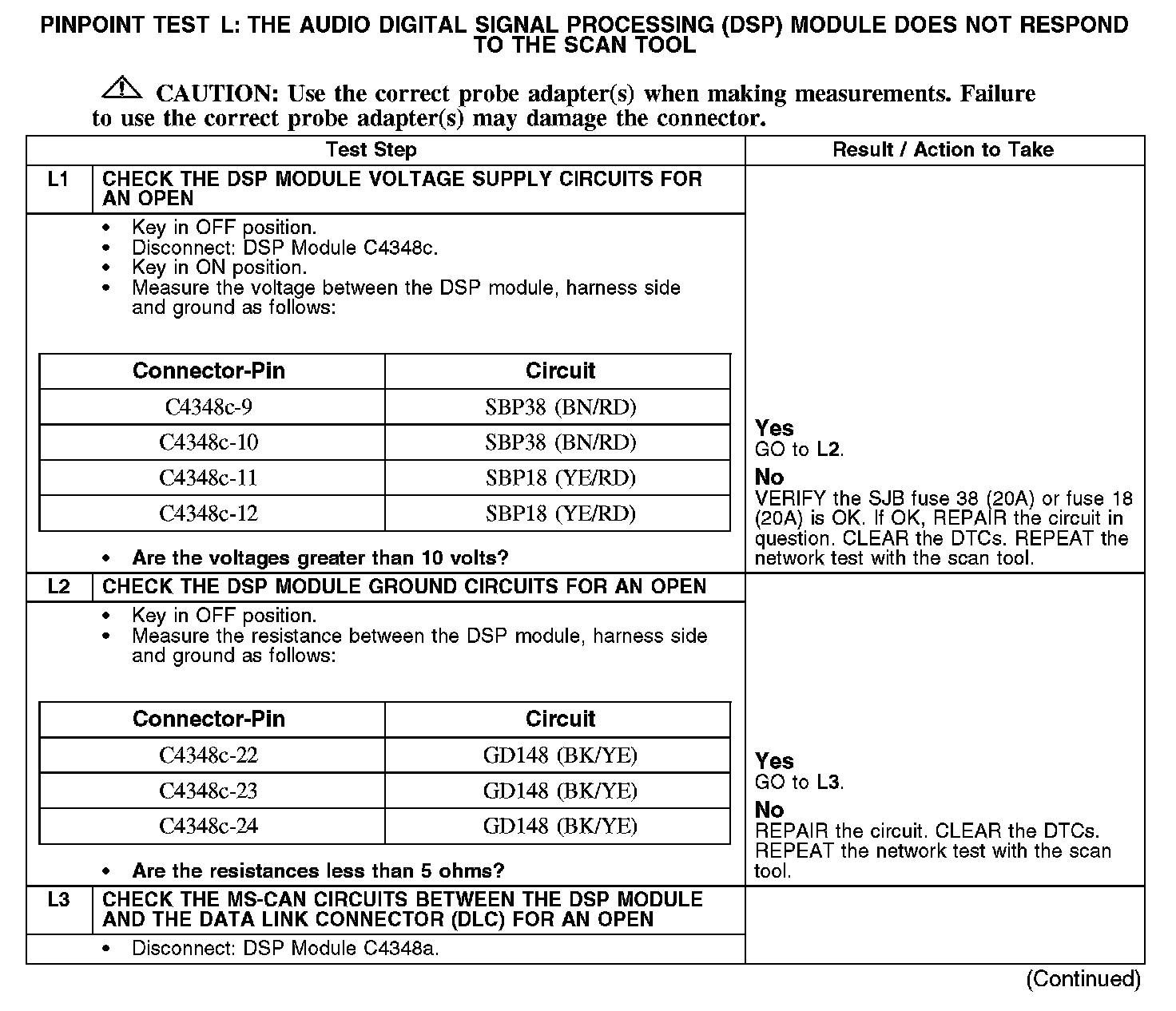 PINPOINT TEST L: THE AUDIO DIGITAL SIGNAL PROCESSING (DSP) MODULE DOES NOT RESPOND TO THE SCAN TOOL
