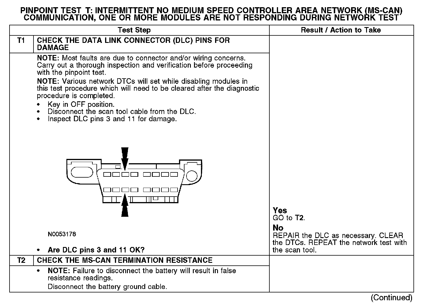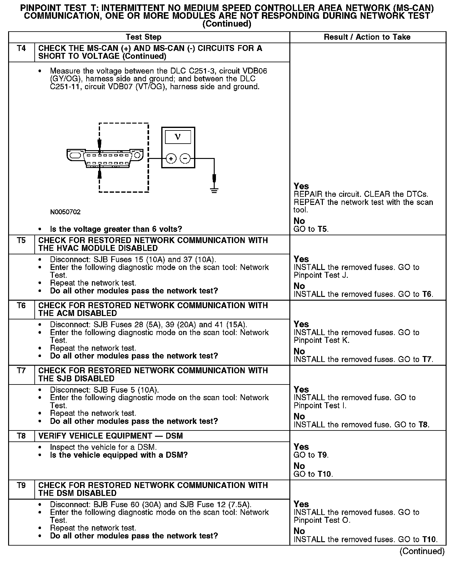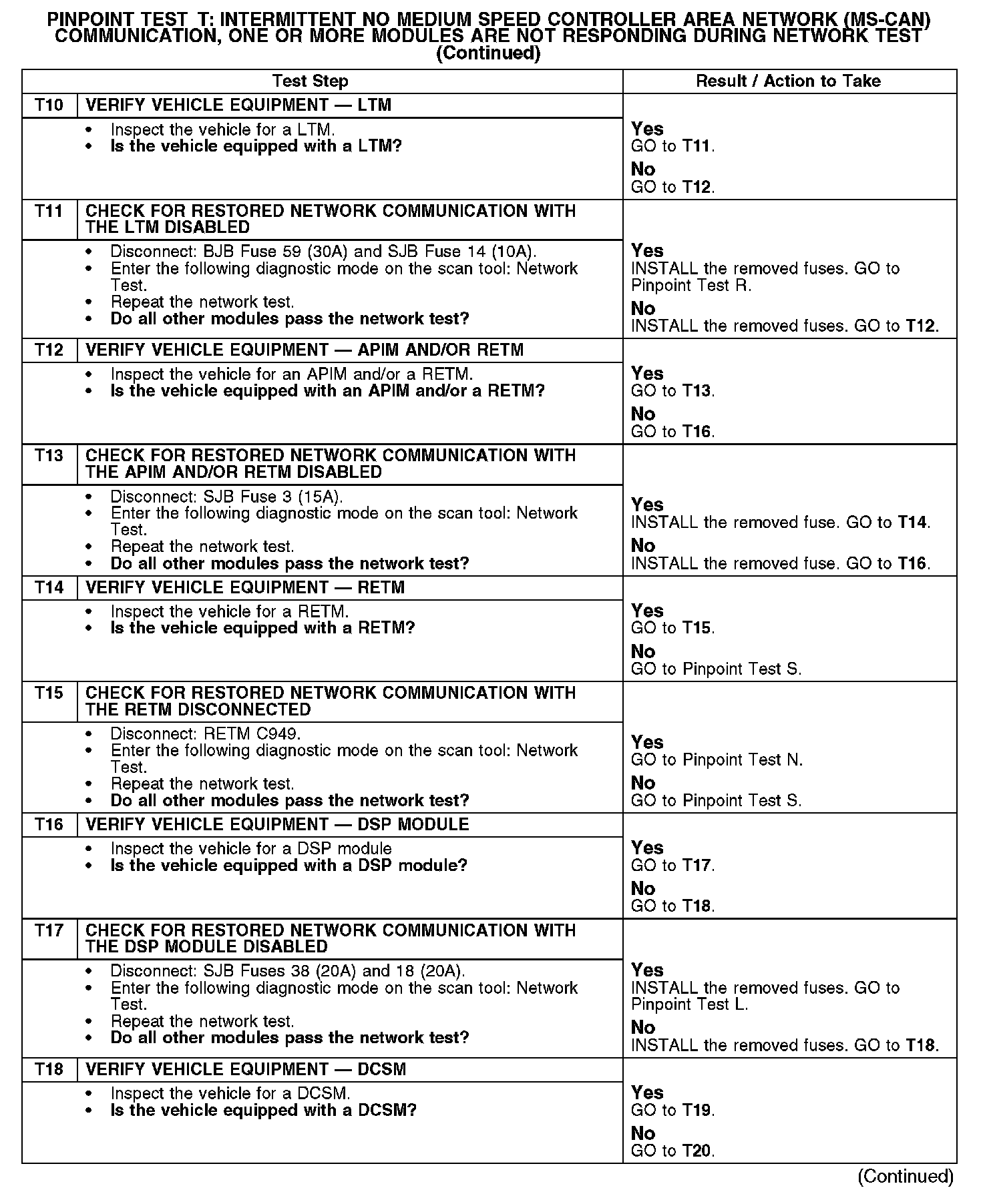 PINPOINT TEST T: INTERMITTENT NO MEDIUM SPEED CONTROLLER AREA NETWORK (MS-CAN) COMMUNICATION, ONE OR MORE MODULES ARE NOT RESPONDING DURING NETWORK TEST