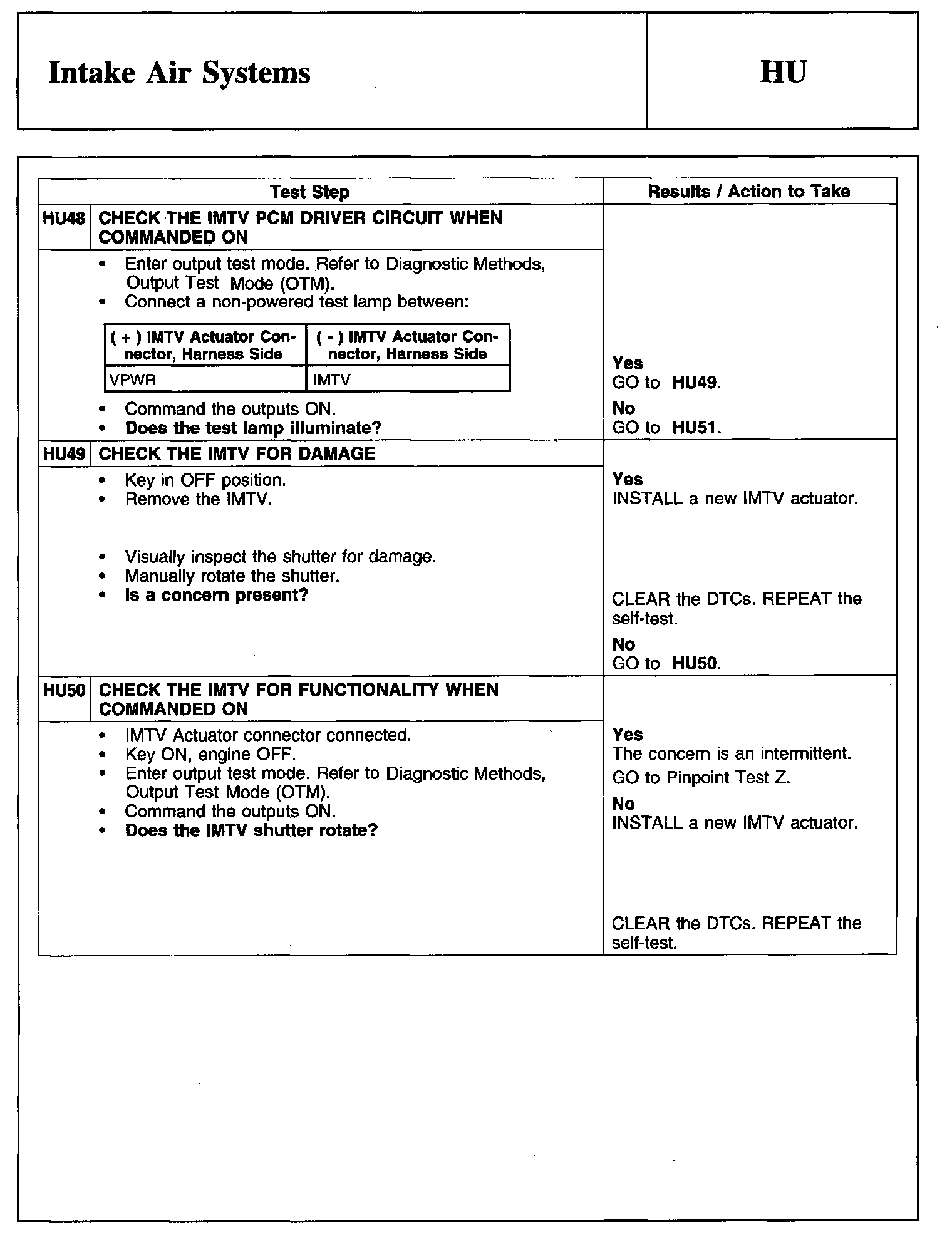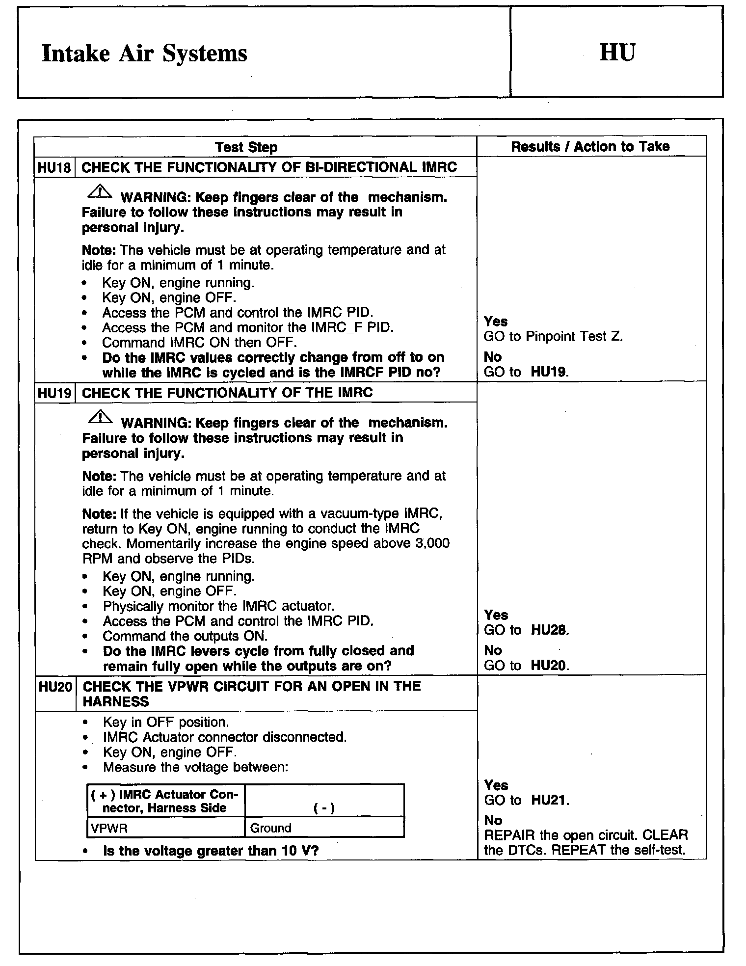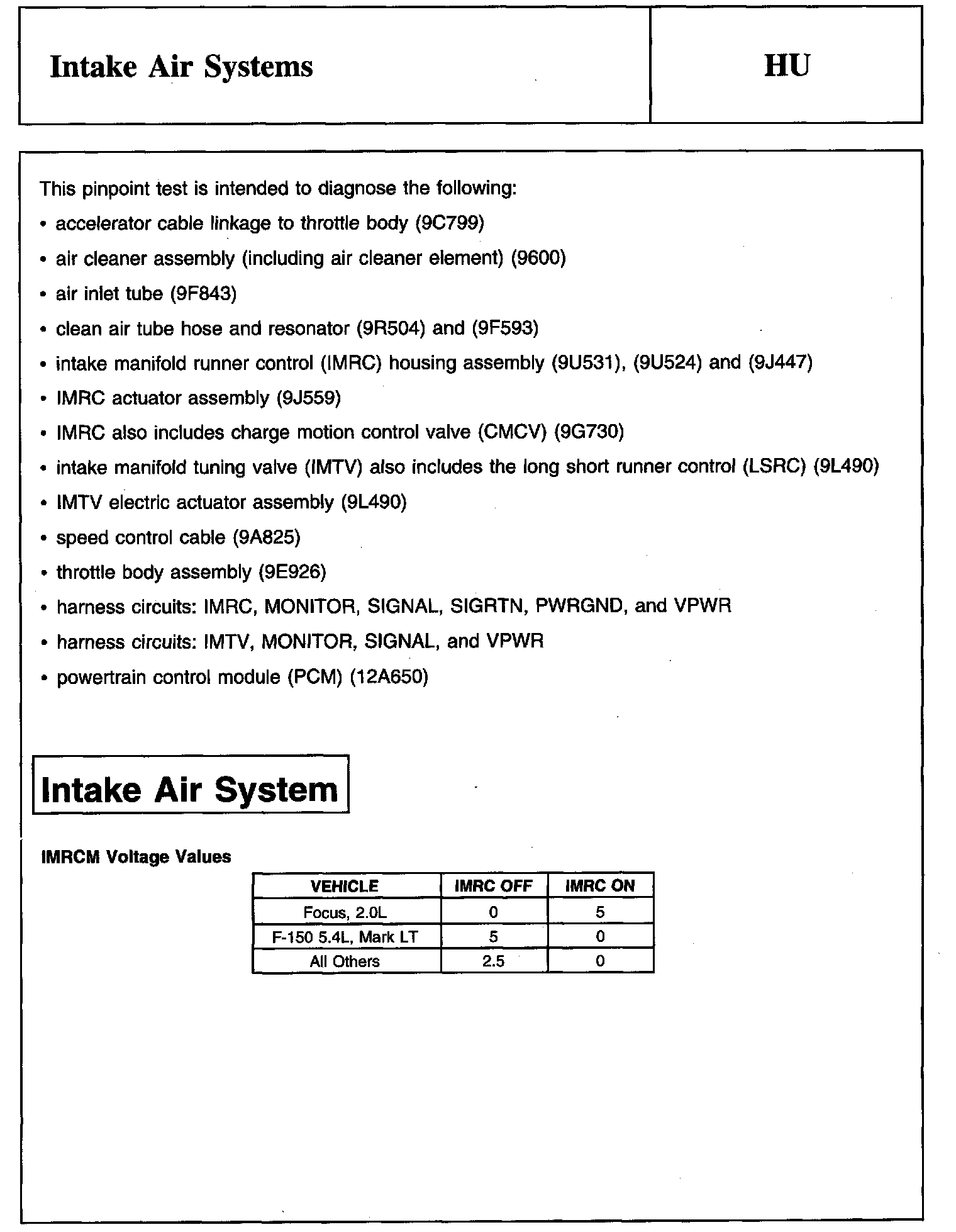 PINPOINT TEST HU: INTAKE AIR SYSTEMSDescription And Intake Air System: