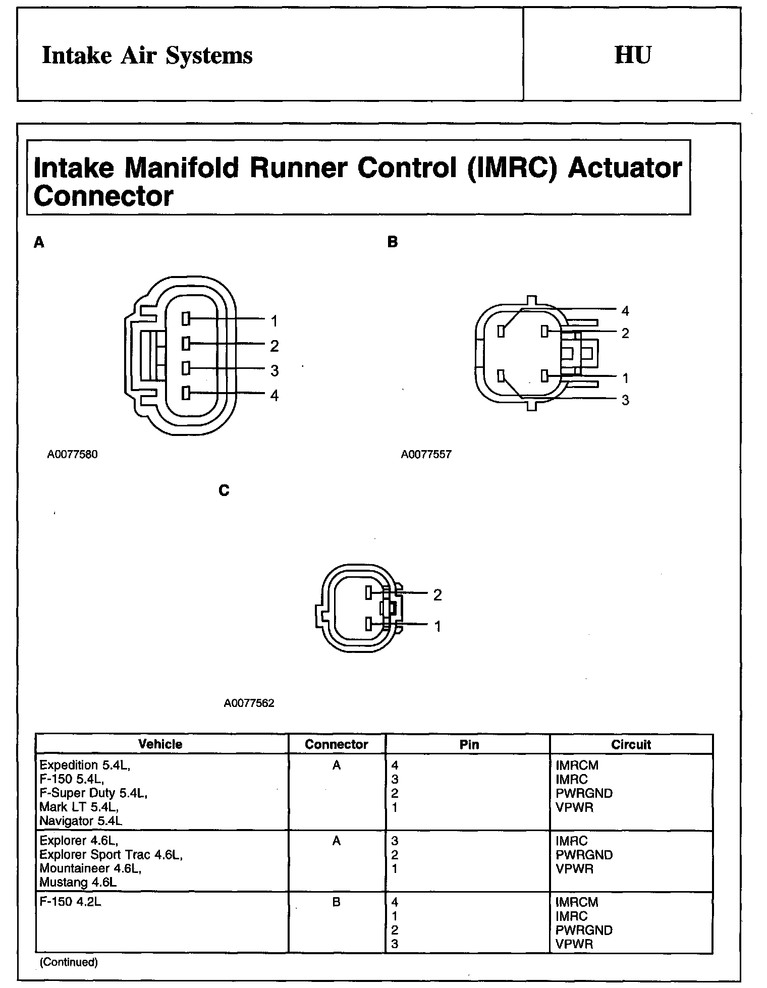 Intake Manifold Runner Control (IMRC) Actuator Connector And Intake Manifold Runner Control Monitor (IMRCM) Sensor Connector: