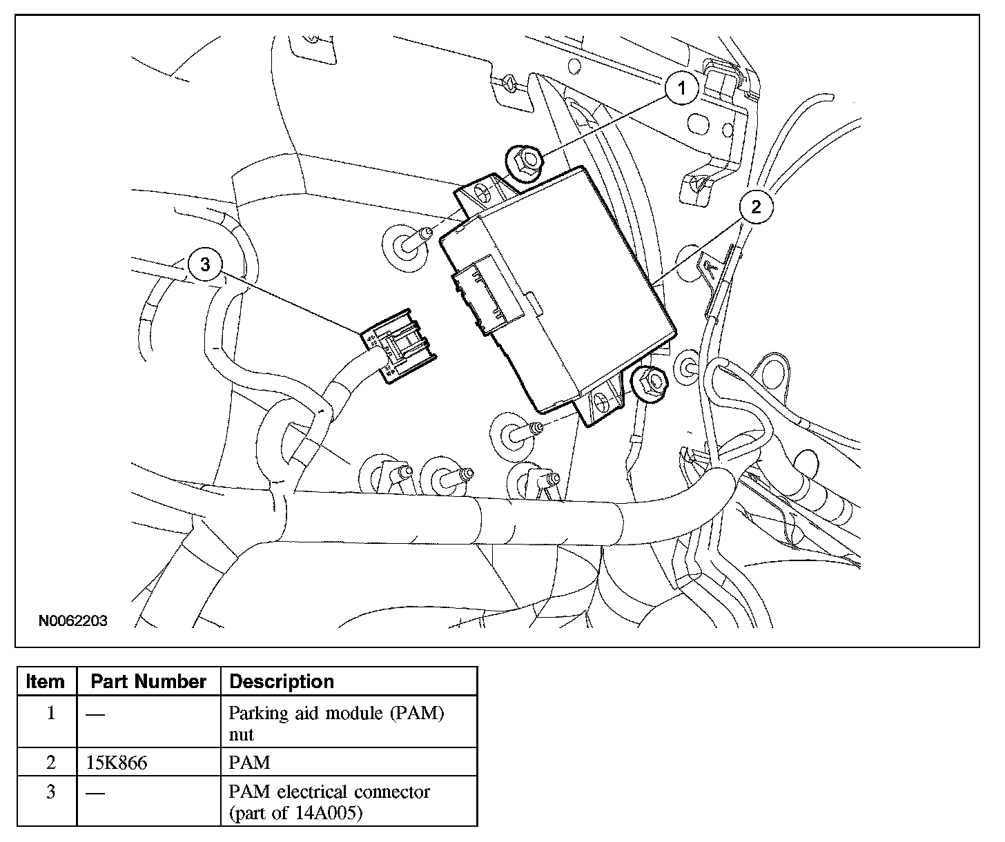 PARKING AID MODULERemoval and InstallationCAUTION: Electronic modules are sensitive to electrical charges. If exposed to these charges, damage may result. 1.