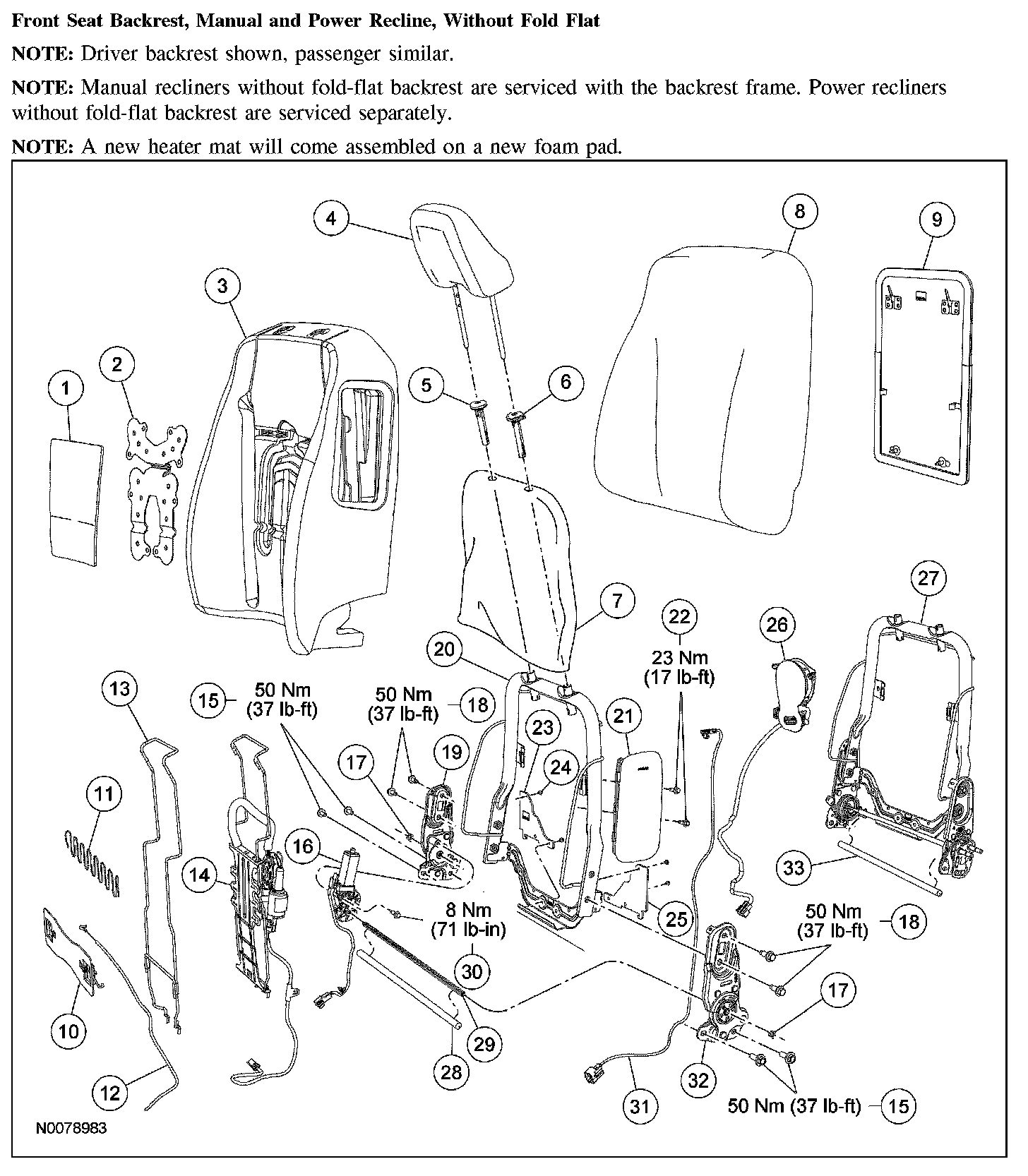 Front Seat Backrest, Manual and Power Recline, Without Fold Flat (Part 1):