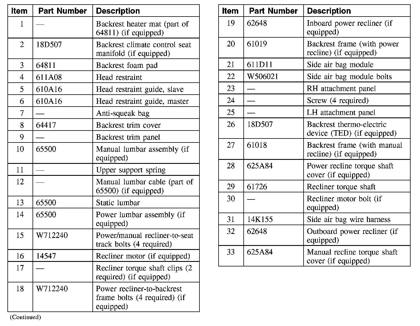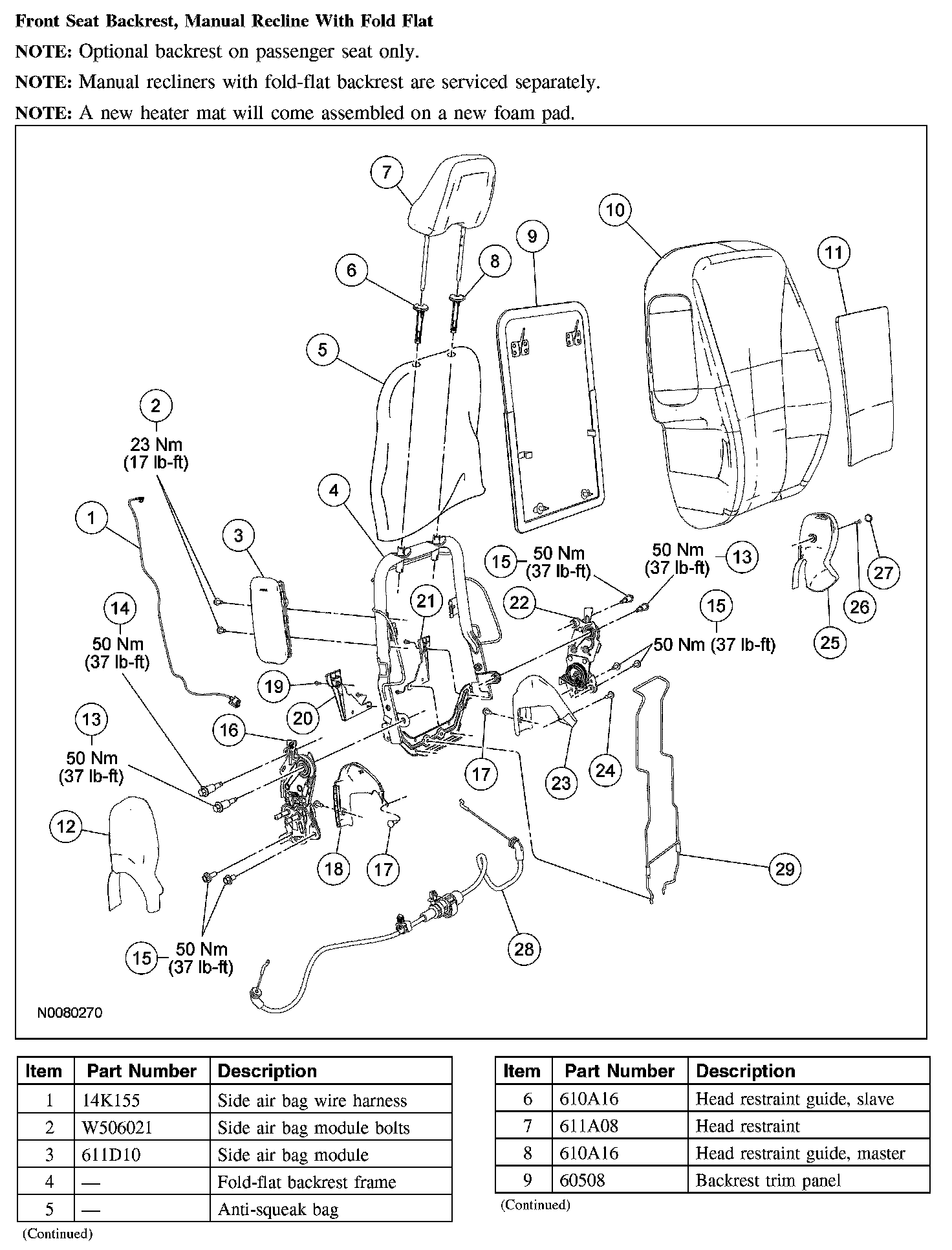 Front Seat Backrest, Manual and Power Recline, Without Fold Flat (Part 2):