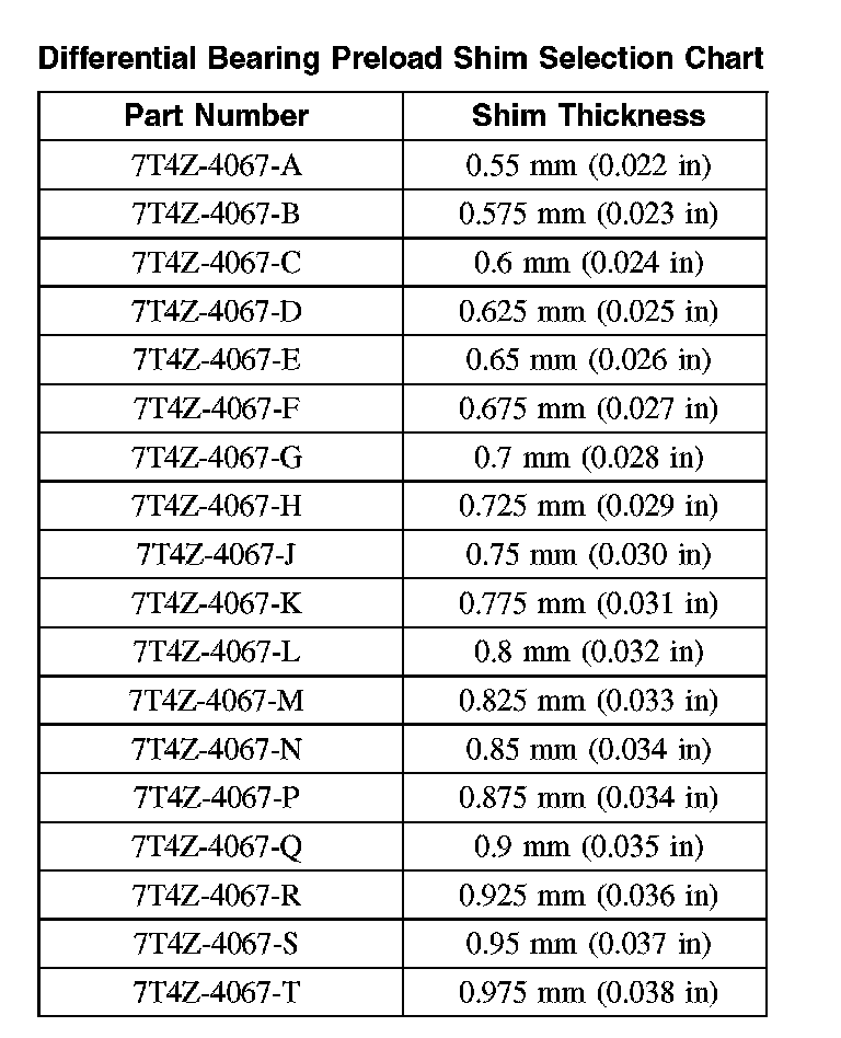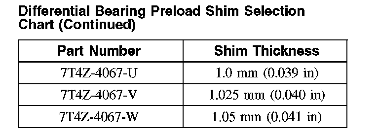 Differential Bearing Preload Shim Selection Chart (Part 1):