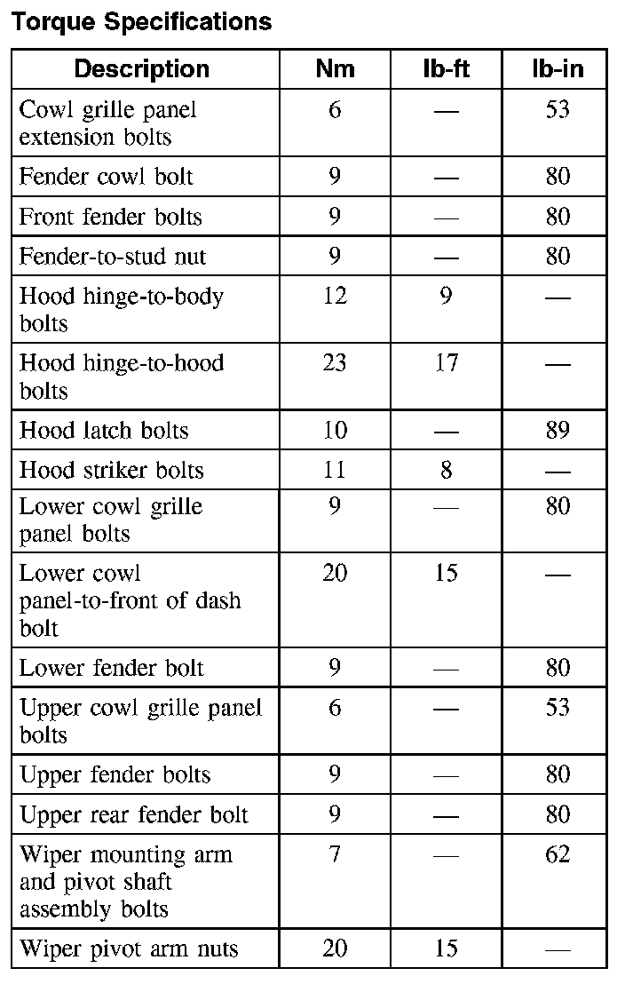 Torque Specifications: