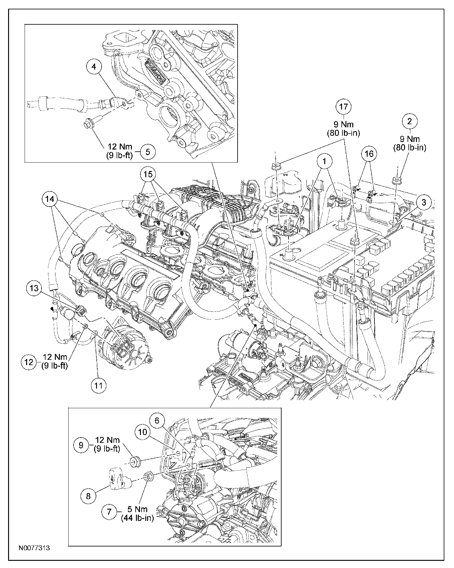 - To install, tighten to 12 Nm (9 lb-ft).