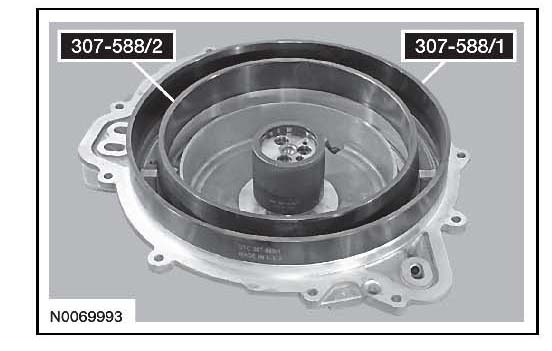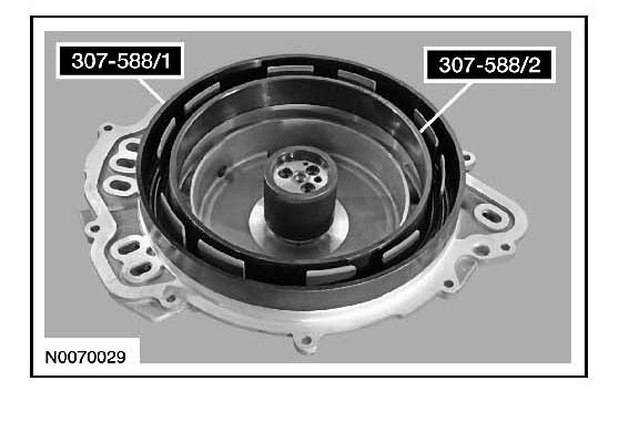6. Install Reverse Clutch Piston Seal Protectors 307-588/1 and 307-588/2.