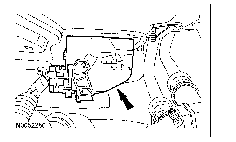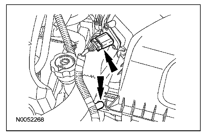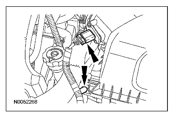 2. Disconnect the mass air flow (MAF) sensor electrical connector and the wiring harness fastener from the air cleaner assembly.