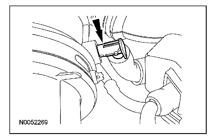 Remove the coolant hoses from the transmission fluid filler tube and position aside.