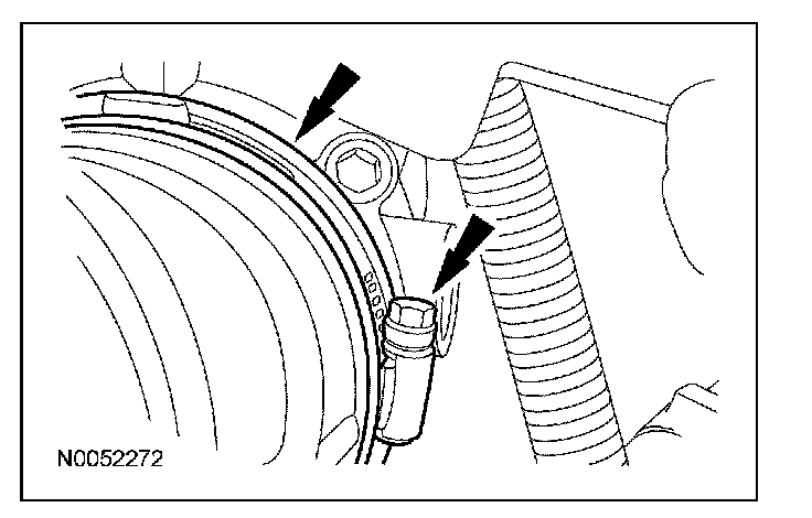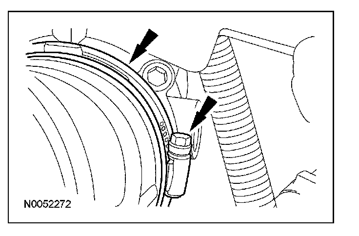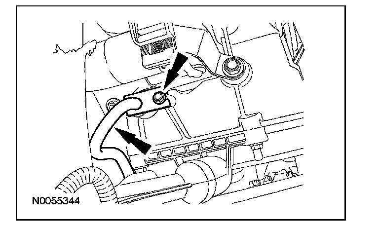 13. Remove and discard the transmission fluid cooler tube bolt and remove the transmission fluid cooler tube.