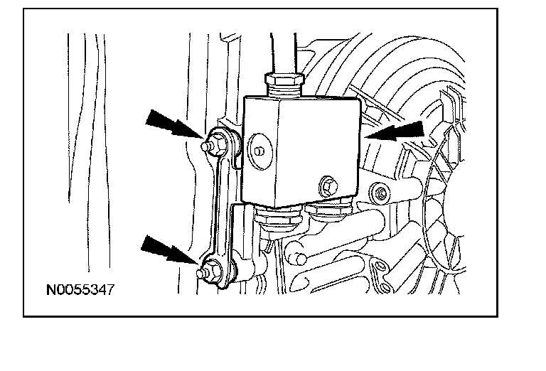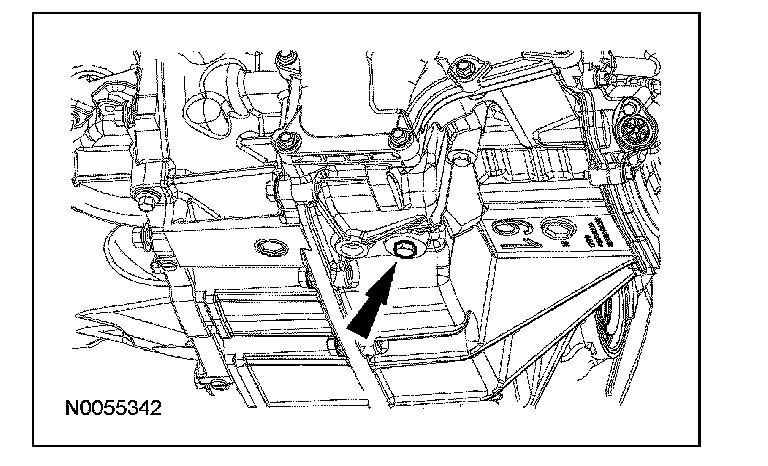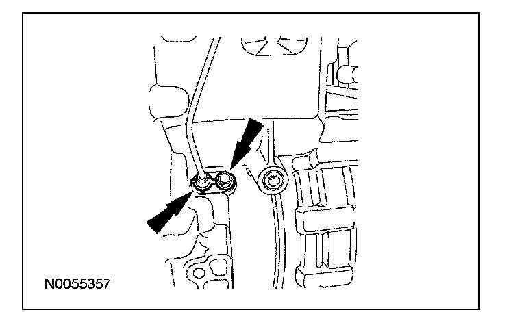 14. Position the transmission fluid cooler thermal bypass valve and transmission fluid cooler tube assembly in place and install the 2 nuts.