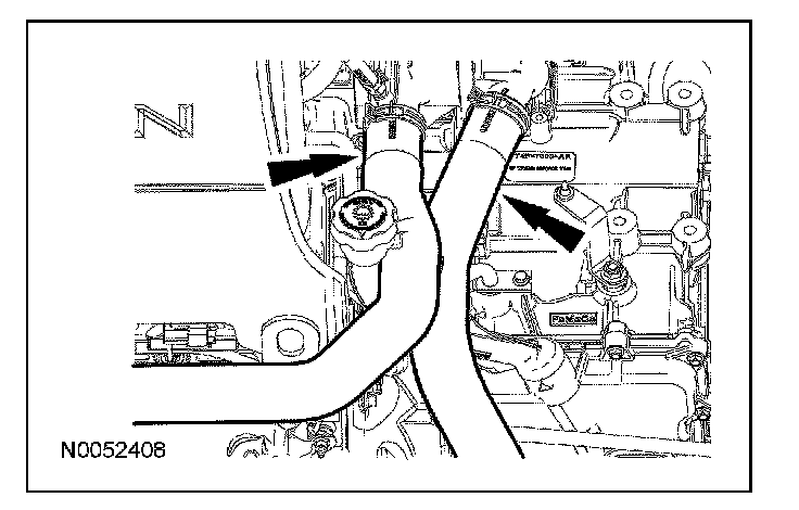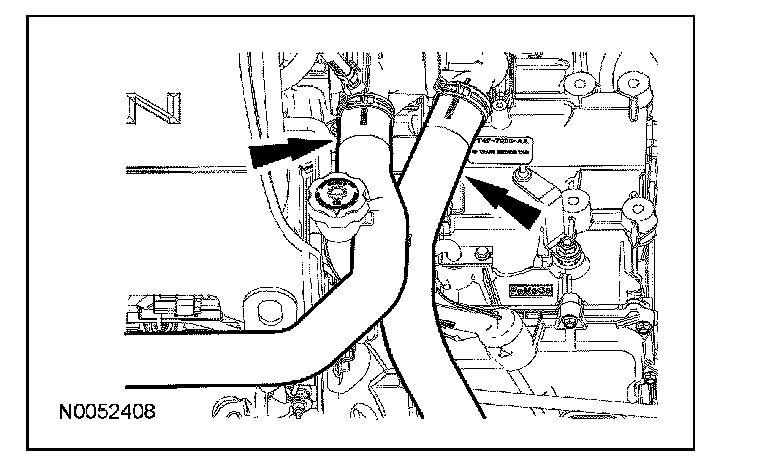 21. Route the coolant hoses in the transmission fluid filler tube.