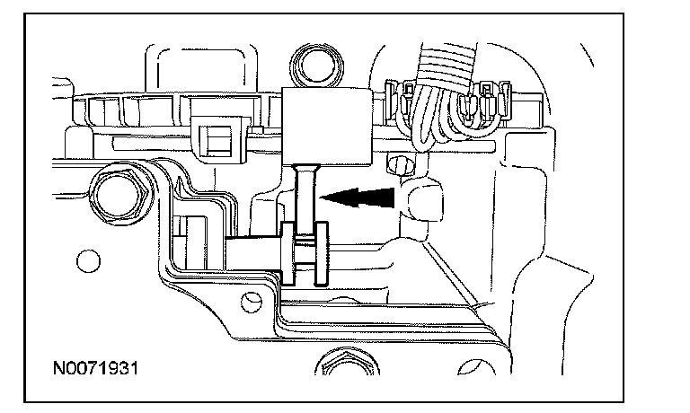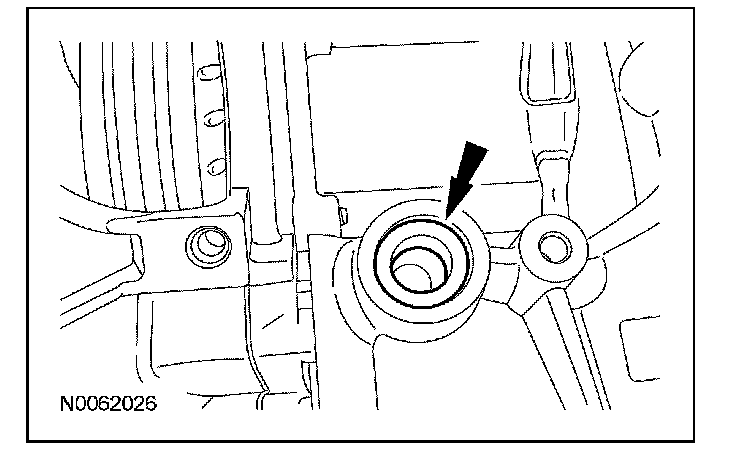14. Inspect the transaxle case to make sure that the transmission fluid cooler tube seal and backing ring were removed with the transmission fluid cooler tube and are not stuck in the transaxle case. If the transmission fluid cooler tube seal or backing ring are stuck in the transaxle case, remove the seal and backing ring.