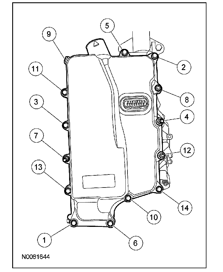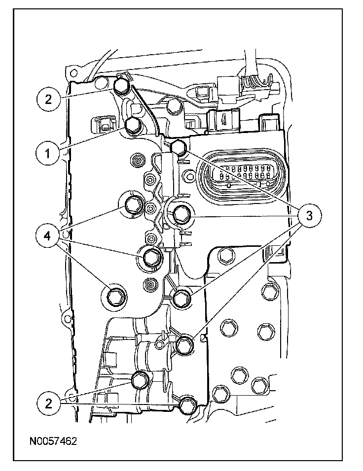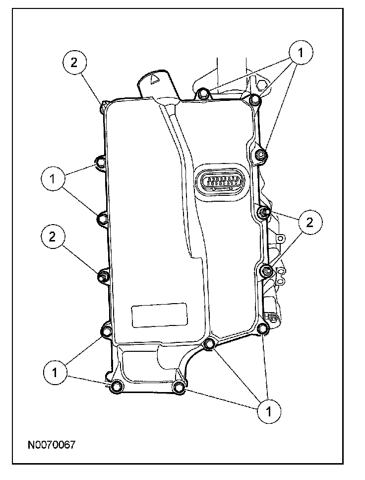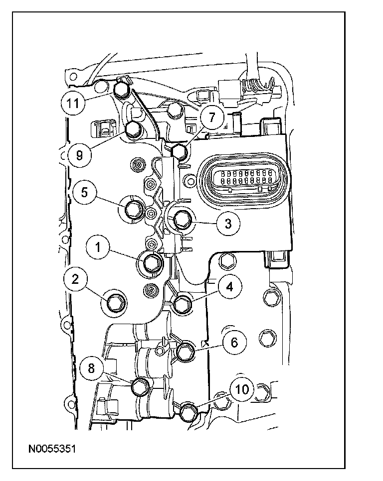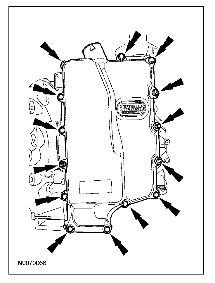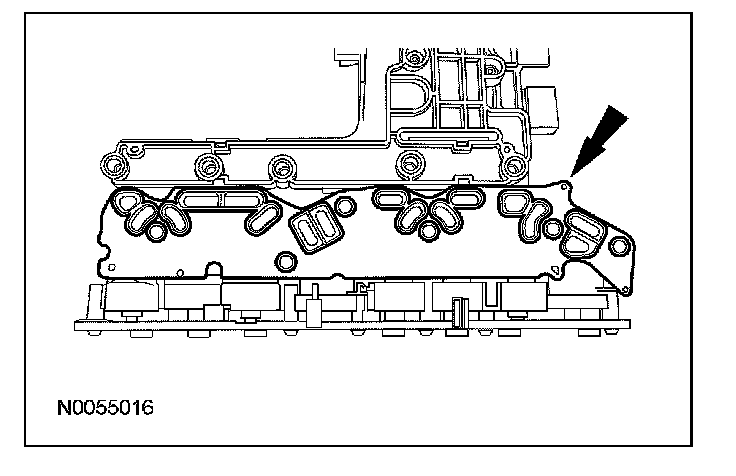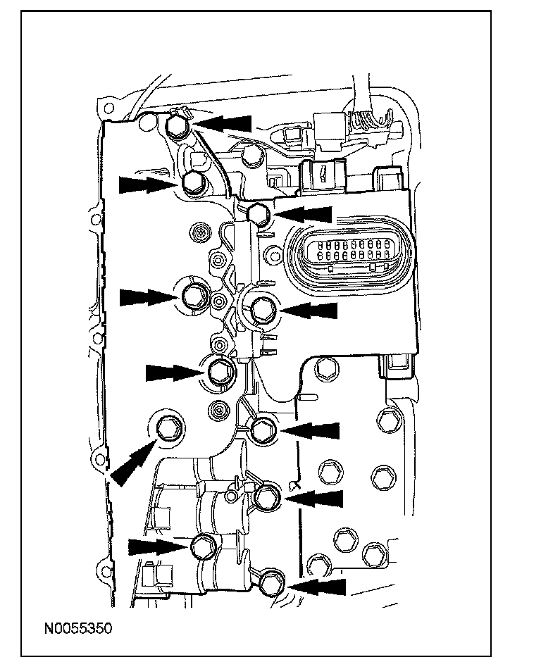 12. CAUTION: Inspect the 20-pin solenoid body connector seal to make sure that the seals is on the inside of the main control cover. Transmission fluid leak will occur.