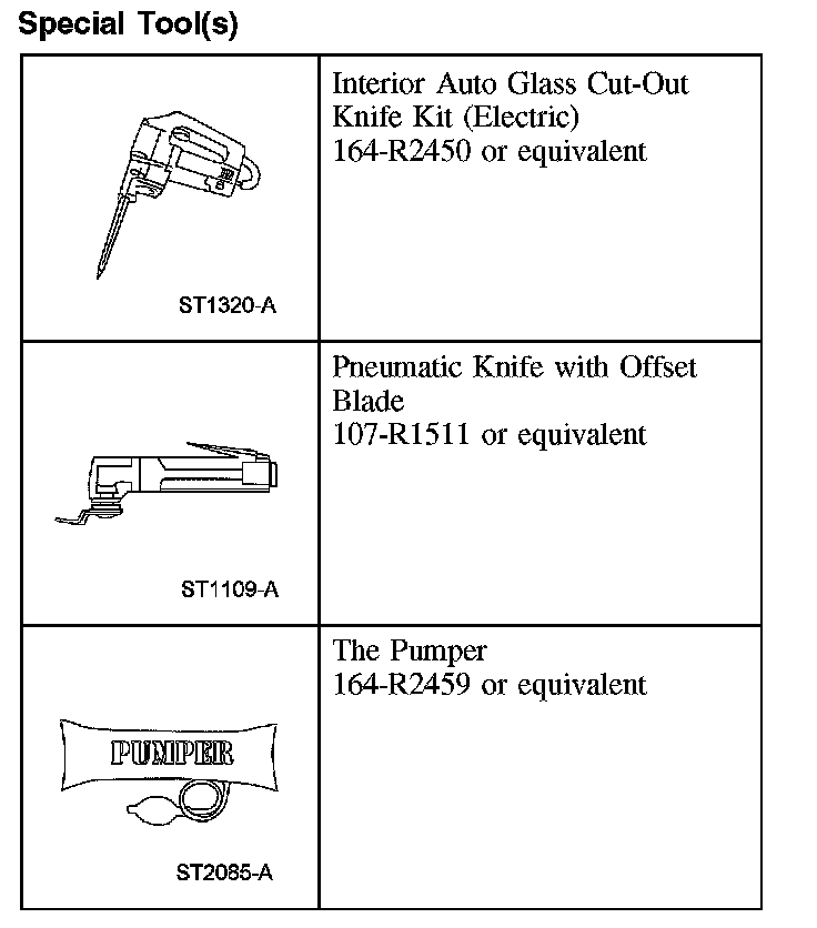 WINDOW GLASS - LIFTGATESpecial Tool(s)