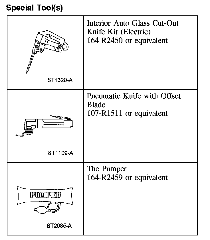 WINDOW GLASS - REAR QUARTERSpecial Tool(s)