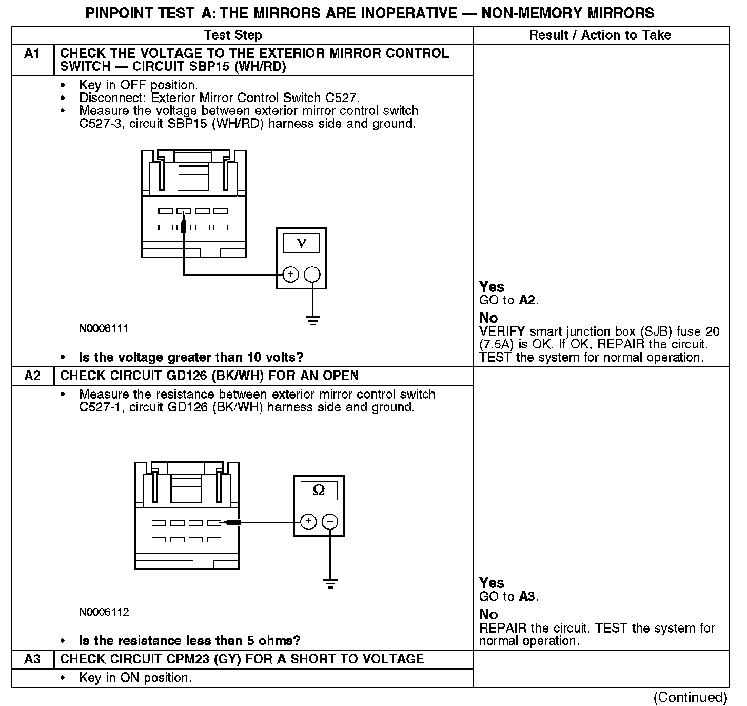 PINPOINT TEST A: THE MIRRORS ARE INOPERATIVE - NON-MEMORY MIRRORSNormal Operation