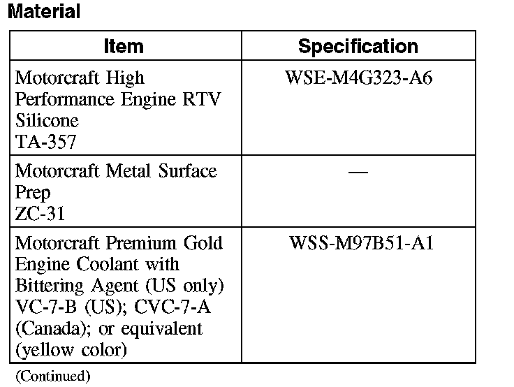 1. CAUTION: Failure to use Motorcraft High Performance Engine RTV Silicone may cause the engine oil to foam excessively and result in serious engine damage.
