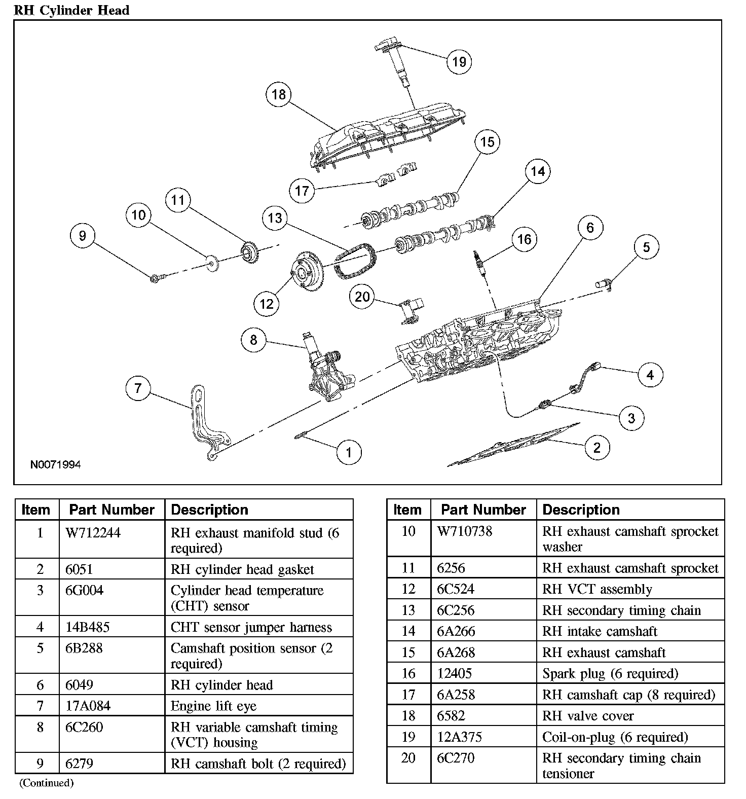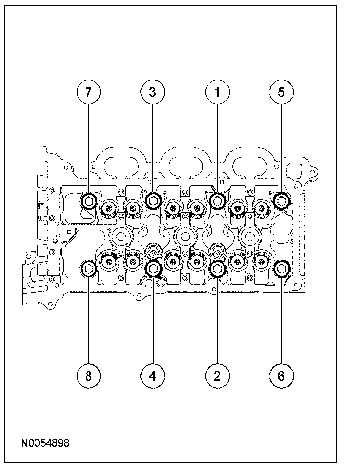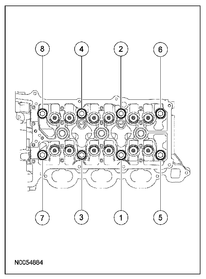 15. Install a new gasket, the RH cylinder head and 8 new bolts. Tighten in the sequence shown in 5 stages: