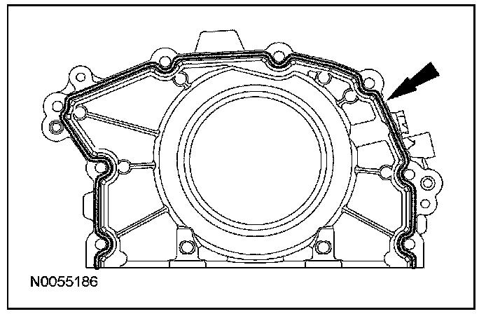 Apply a 3 mm (0.11 inch) bead of Motorcraft High Performance Engine RTV Silicone to the sealing surface of the crankshaft rear seal retainer.