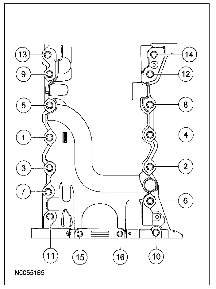 10. Install the remaining oil pan bolts. Tighten all the oil pan bolts in the sequence shown.