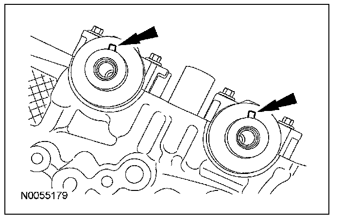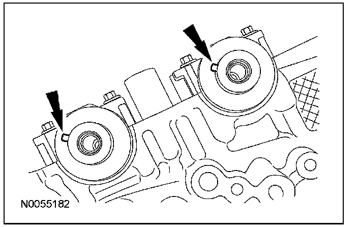 Position the camshafts onto the LH cylinder head in the neutral position as shown.