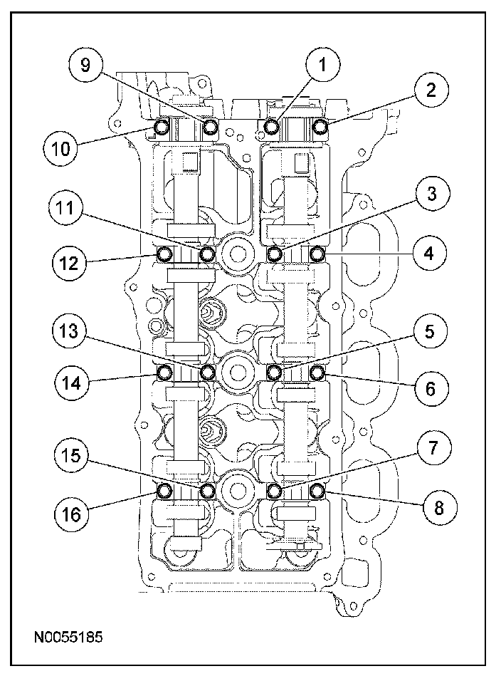 24. NOTE: Cylinder head camshaft bearing caps are numbered to verify that they are assembled in their original positions.