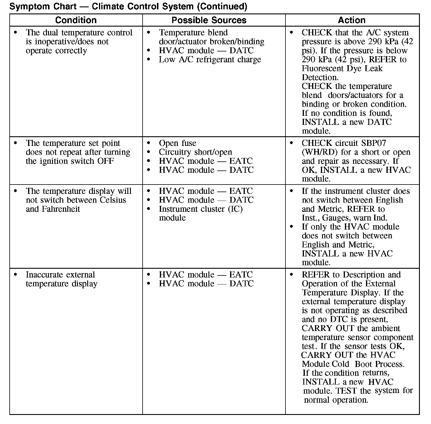 Symptom Chart - Climate Control System