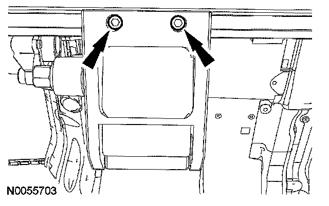 CAUTION: An assistant is required to hold the power running board (PRB) before removing the bracket-to-step screws. Remove the 2 front and 2 rear bracket-to-step screws and the PRB step.
