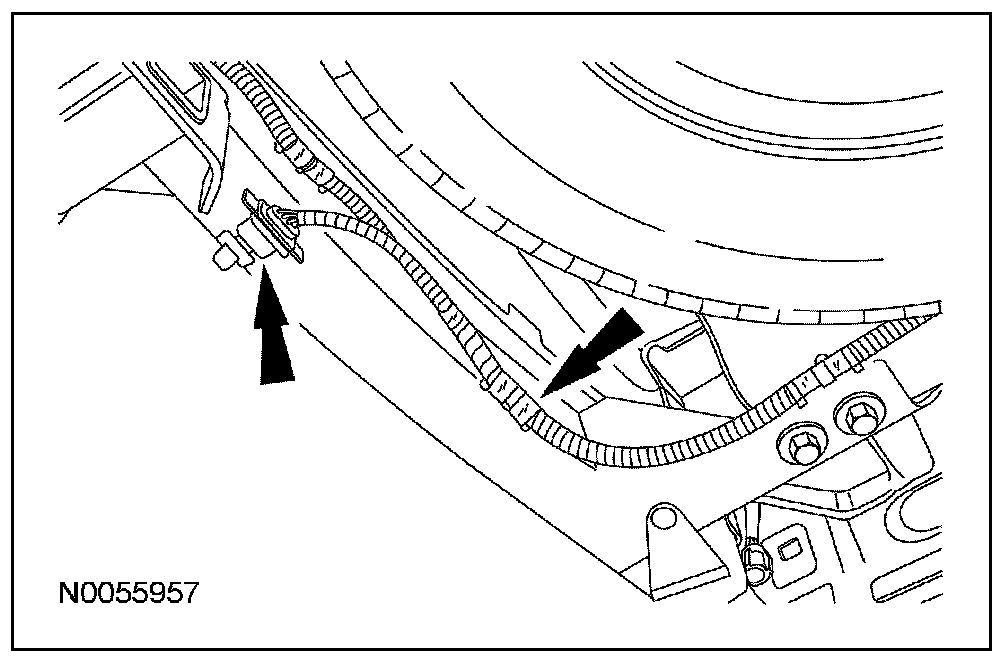 5. Remove the electrical connector from the trailer hitch and unclip the harness from the retainers on the frame.