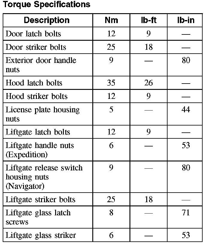 Torque Specifications: