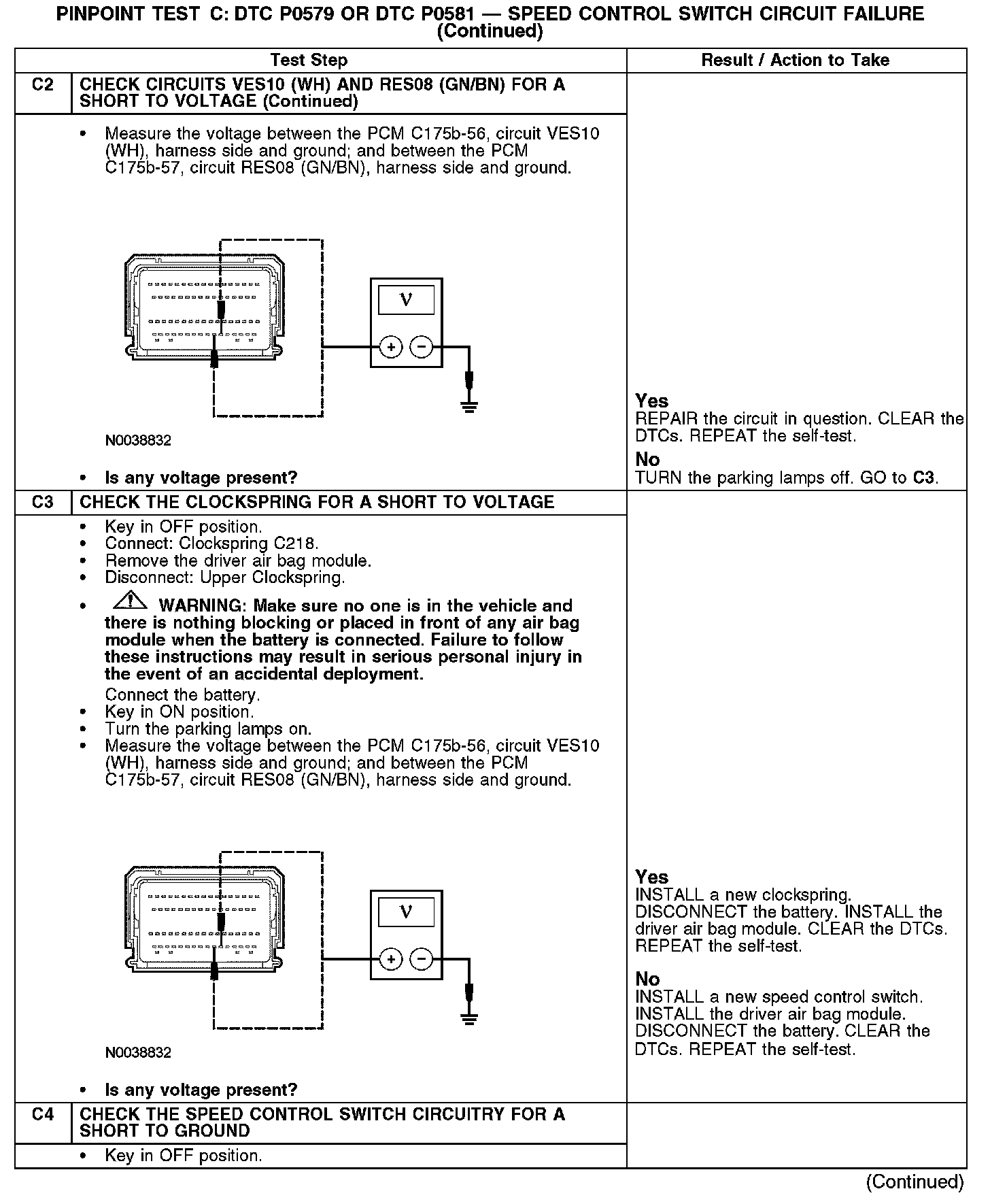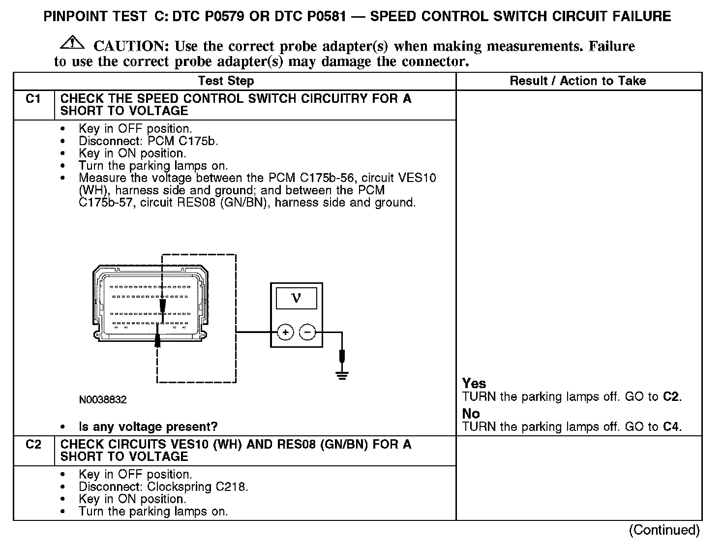 PINPOINT TEST C: DTC P0579 OR DTC P0581 - SPEED CONTROL SWITCH CIRCUIT FAILURENormal Operation